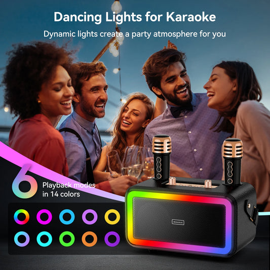 Karaoke Machine, Portable Speaker PA Systerm with 2 Wireless Microphones for Adults and Kids
